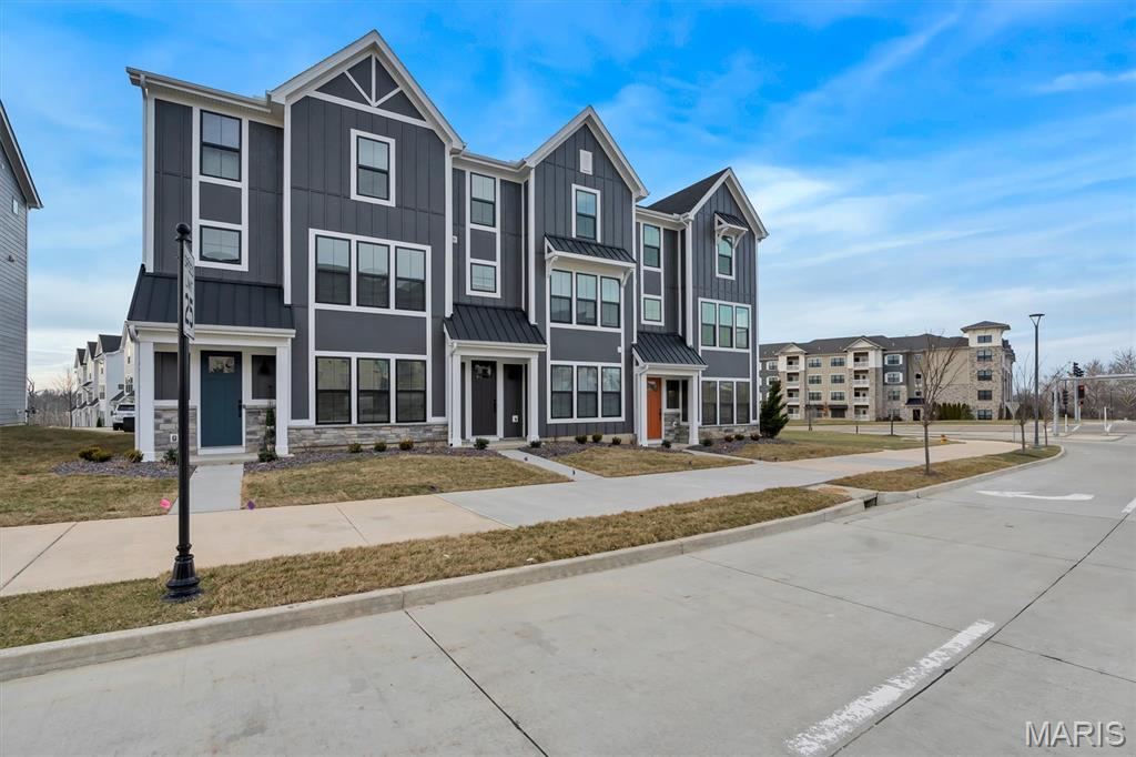 This newly built, never-occupied three-story end-unit townhome is ideally located in the highly sought-after area in Chesterfield. Nestled in a tranquil community setting, the home offers abundant natural light throughout. The ground level provides a welcoming entry with excellent flexibility, featuring a bedroom, full bathroom, and space ideal for a large mudroom or additional living area. On the main level, enjoy an open-concept floor plan designed for both everyday living and entertaining. The expansive quartz island anchors the kitchen and opens seamlessly to the living and dining areas. The third floor features a modern primary suite with a private ensuite bathroom, two additional bedrooms, and a third full bath. A conveniently located laundry area completes the upper level, perfectly positioned to serve all bedrooms. This home offers the best of maintenance-free living, exceptional location, and thoughtful design. HOA fees are included in the list price. Location highlights: End unit, ground-level entry,