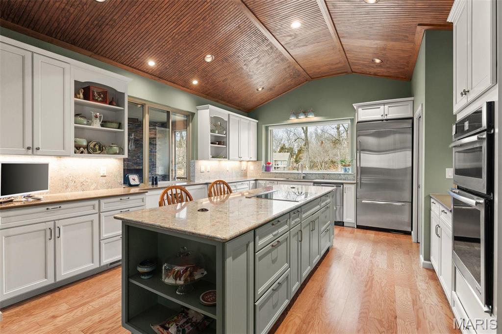 This stunning 6-year-old Innsbrook Resort home offers 170 feet of waterfront and the perfect blend of luxury and relaxation. Designed for both weekend getaways and full-time living, the home features 4 bedrooms, a home office, and a yoga room—both of which can serve as additional sleeping spaces. The home boasts a geothermal HVAC system, 9-ft ceilings, and a gourmet kitchen with a Jennair induction cooktop, convection oven, walk-in pantry with sink, and pass-thru window to the patio. Thoughtful details include electric blinds, two fireplaces, and a serene primary suite with dual walk-in closets and an outlet-equipped vanity drawer. Enjoy two laundry rooms, a mudroom with a cedar closet, a three-car garage with built-in organization, and a versatile craft/exercise room. A lower-level office and guest suite with a full bath add flexibility. Outside, a private dock, underground dog fence, and ample parking complete this lakeside retreat, perfect for weekend escapes or year-round living. Additional Rooms: Sun Room