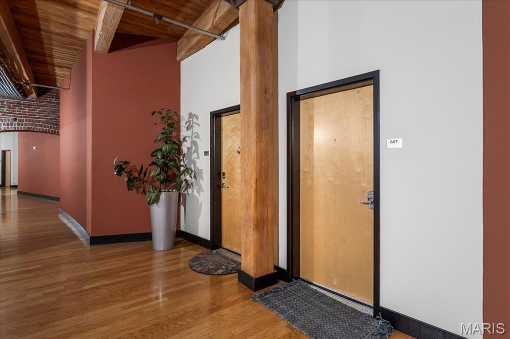 Historic Lucas Lofts. We all love this building and location! In the heart of downtown, experience all Washington Ave has to offer. Amazing wood plank ceilings, exposed brick throughout, huge windows. Granite counter tops, stainless appliances, 42" cabinets, curved pocket doors. Open concept living. Breakfast bar separates the dining and living room, but maintains the grand open loft feel. Enjoy access to the rooftop and pool.