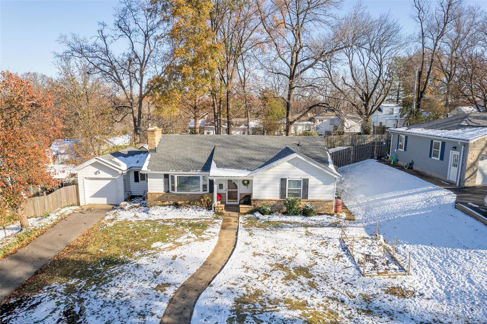 Improved Price! 1,274 sq ft ranch home would fit perfectly under your tree. Absolutely darling 2 bedroom plus office home located in Kirkwood. One floor easy living but offers many storage opportunities. Inviting large sun-filled living room w/ bay window features a wood burning fireplace & a mantle ready to hang your holiday stocking. Opens into a cozy dining room with new stylish black chandelier with fantastic views of the backyard. Kitchen provides tons of granite countertops to prepare future holiday festivities- stainless steel appliances, many black cabinets & open shelving. Hardwood floors continue down the hall to 2 nice sized bedrooms share an updated full bath w/ contemporary shower door, tile surround & updated sconces. Primary bedroom offers plenty of room for king bed, walk-in closet plus bonus closet. Laundry is conveniently located off the hallway- new floors & attic! 1 car garage- Brand new roof, gutters & AC '24-Passed radon, sewer & termite!