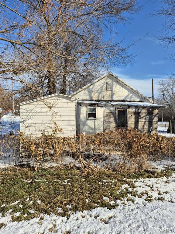Fixer-upper opportunity: 2-bedroom, 1-bathroom home with approximately 720 sq ft of living space. Features a living room and laundry room in need of flooring replacement. Property currently has no central HVAC (window units and space heaters used) and no water due to a burst pipe in the laundry room. Perfect for investors or buyers looking to renovate and personalize a home in Urbana, MO.