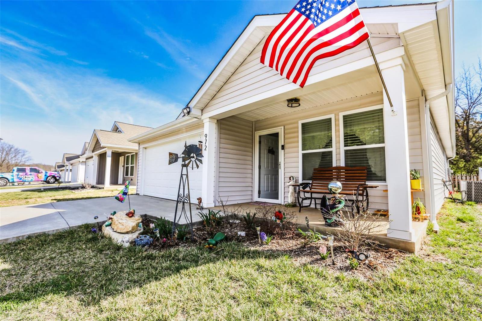 This home qualifies for USDA 100% financing. Low maintenance, 3 bed, 2 bath. 1200+ sq. ft. of elegant living space, there is nothing standard about this home and list of standard features. From the concrete driveway to the low maintenance exterior with enclosed soffit, facsia, vinyl siding to the completely drywalled two car garage. Stunning and bright with natural light, vaulted ceilings, designer lighting package and luxury vinyl plank flooring throughout the home. Extra wide hallways and doorways for easy access. 3 spacious bedrooms including the master suite with walk-in closest, granite tops and walk-in shower. Your designer kitchen is equipped with stainless appliances, quality white shaker cabinetry and granite counters at your breakfast bar with vaulted ceilings leading into your breakfast room and great room. Sliding door exits to your Fenced yard with FULLY SODDED LAWN. Just 2 years old & MOVE-IN READY, conveniently located to Interstate 44.